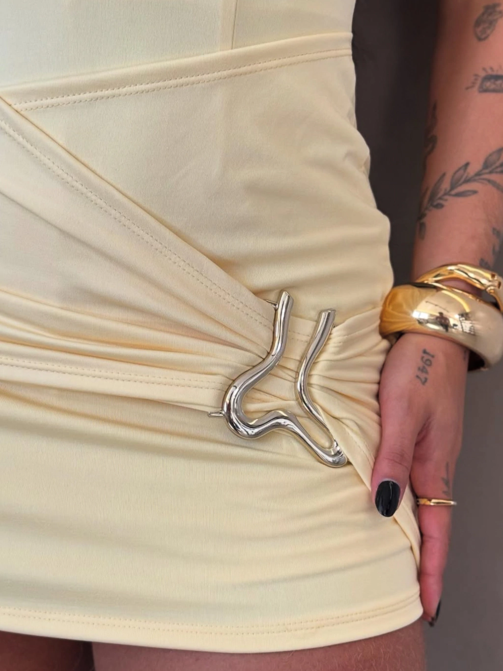 O Macaquinho Jess une praticidade e estilo em uma peça única. Com modelagem ajustada que valoriza as curvas e detalhe de amarração nas costas, ele traz um toque moderno e feminino. O decote alto garante sofisticação, enquanto a saia sobreposta com drapeado lateral adiciona charme e movimento ao visual. Versátil, pode ser combinado tanto com tênis para um look despojado quanto com salto para ocasiões mais especiais.
